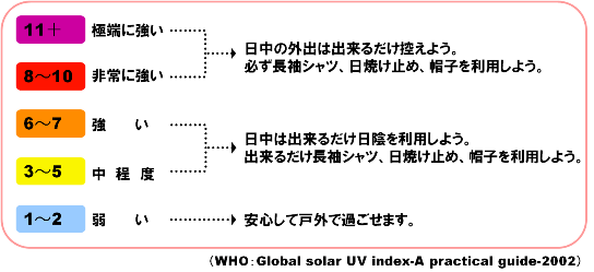 UVインデックス」が8以上の場合は外出を控えた方が良い