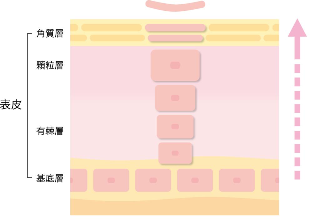 日焼けの際には、皮膚の表面部分にメラニン色素が並べられることで紫外線ダメージを抑制しますが、一定期間を経ると黒くなったお肌も元の色味に戻っていきます。これはお肌の「ターンオーバー」で、古い角質が皮膚の外へと押し上げられることによって起こります。