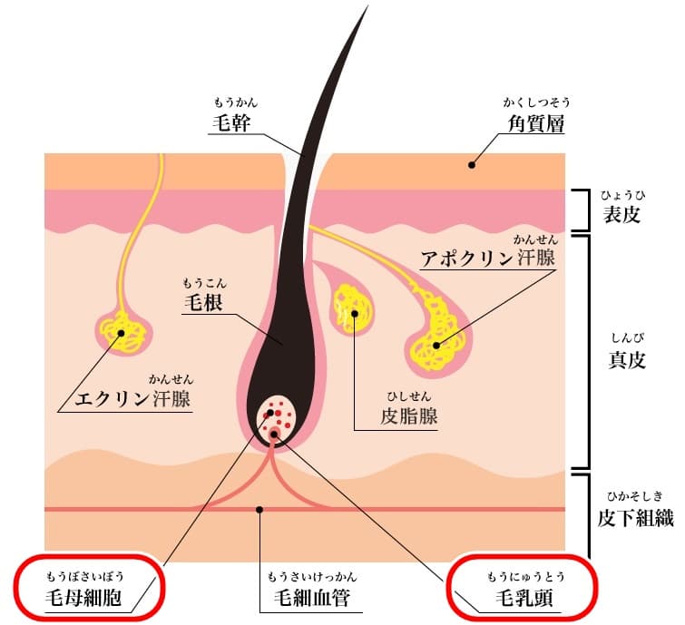 医療脱毛のレーザー脱毛施術では、脱毛メカニズム上、その毛穴に毛が生えている時にしか毛根組織にダメージを与えられません。 厳密に言うと、その毛穴の中にある毛が「毛乳頭」と呼ばれる箇所に繋がっていないと、発毛の司令塔組織である「毛母細胞」に決定的なダメージを与えられないのです。